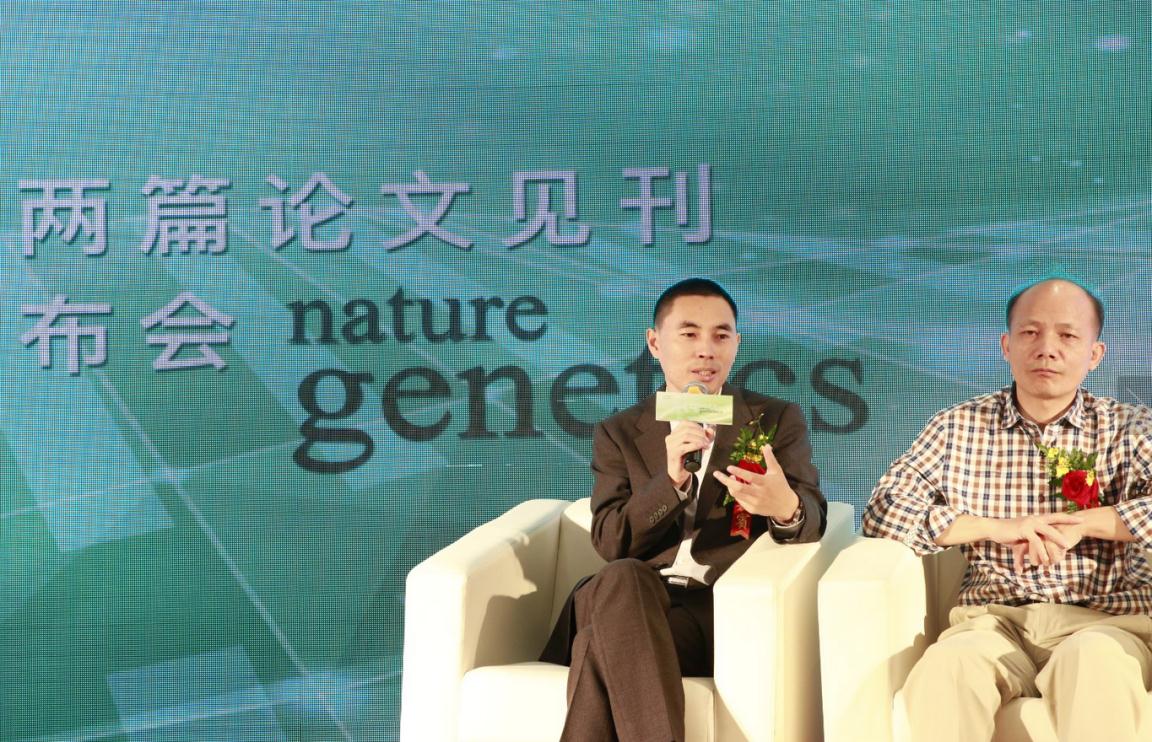 于軍教授在發(fā)布會中發(fā)言,首先對科學(xué)家們?nèi)〉玫目蒲谐晒硎咀YR。接著回顧了水稻等農(nóng)作物研究的歷程,并強(qiáng)調(diào)農(nóng)作物基因組研究的重要意義,將為農(nóng)學(xué)的深入功能研究以及應(yīng)用打下堅(jiān)實(shí)的基礎(chǔ)。