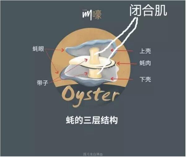 我的第二個待選畢業(yè)論文方向是《生蠔為什么這么緊》。眾所周知,生蠔之所以蠣殼禁閉,難以開啟,是因為它有著強悍的閉合肌,(見下圖,圖片來自網絡,)而經我考察文獻研究發(fā)現,18世紀之前的生蠔,其閉合肌是遠比現在弱小的,究竟是什么事情造成了那短短幾十年中生蠔的突變?
