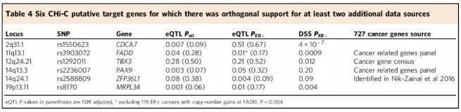 捕獲Hi-C測序鑒定33個乳腺癌風(fēng)險基因座潛在的110個靶基因