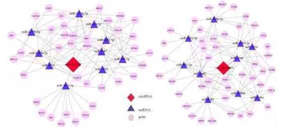 圖4. circ-EFCAB2、circ-DROSHA調控網(wǎng)絡
