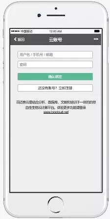 2.點擊屏幕右下方“更多”按鈕,選定云賬號綁定頁面,輸入云賬號和密碼