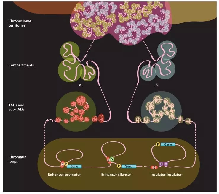 圖1 染色體不同層級三維構象圖