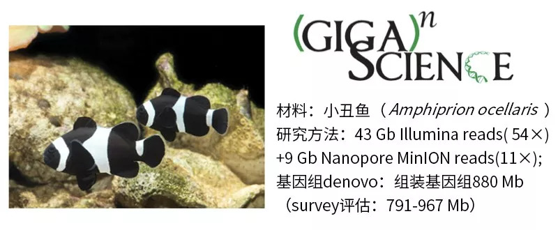(4)Mun H T, Christopher M A, Michael P H.,et al. Finding Nemo: hybrid assembly with Oxford Nanopore and Illumina readsgreatly improves the clownfish (Amphiprion ocellaris) genome assembly. GiGaScience (2017).