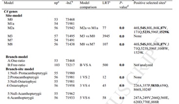 表8 魚C4和C6基因的位點、分枝和分枝位點模型試驗