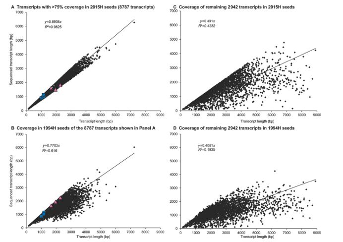 全長(zhǎng)轉(zhuǎn)錄組:采用1994年和2015年收獲的種子胚胎軸(分別為1994H和2015H),分別5個(gè)生物學(xué)重復(fù);