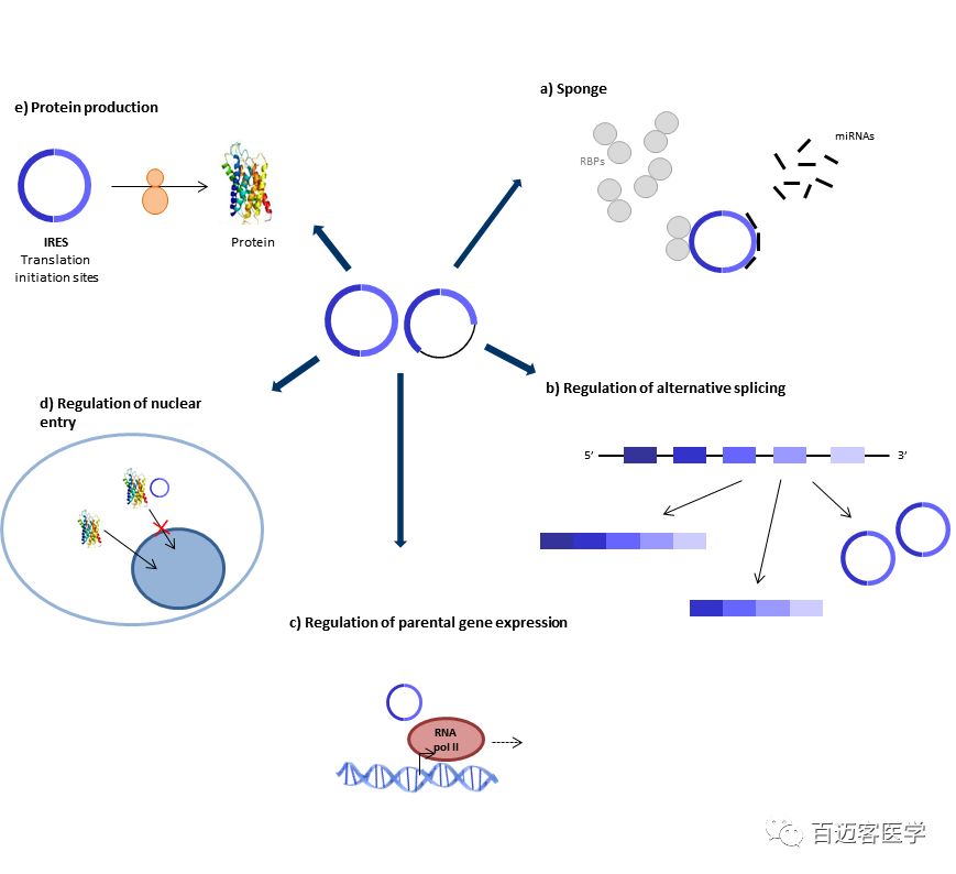 circRNA調(diào)控基因表達(dá)的機(jī)制示意圖: