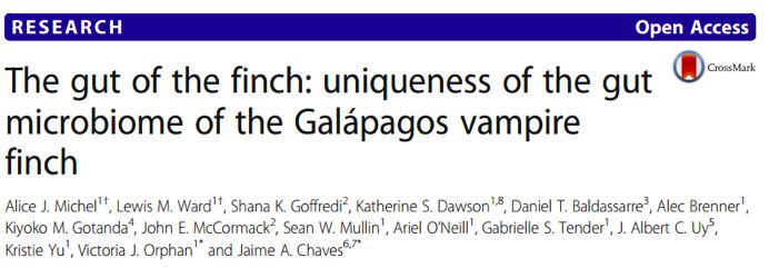 達(dá)爾文雀(Darwin’sfinches),原產(chǎn)于加拉帕戈斯群島的19種雀形目鳥類,由于生態(tài)地域隔離、特異喙結(jié)構(gòu)以及攝食習(xí)性(種子、蟲子及血液)差異,導(dǎo)致他們形成了“適應(yīng)輻射”(adaptive radiation)。盡管人們對(duì)這些標(biāo)志性鳥類進(jìn)行過(guò)調(diào)查,但它們的腸道菌群結(jié)構(gòu)及影響菌群結(jié)構(gòu)的因素尚未被探索。本文作者從達(dá)爾文雀的種類差異、生態(tài)地理位置以及攝食習(xí)性3方面進(jìn)行調(diào)查,研究成果于2018年發(fā)表在國(guó)際微生物TOP期刊Microbiome,該期刊的近五年影響因子為10.9分。