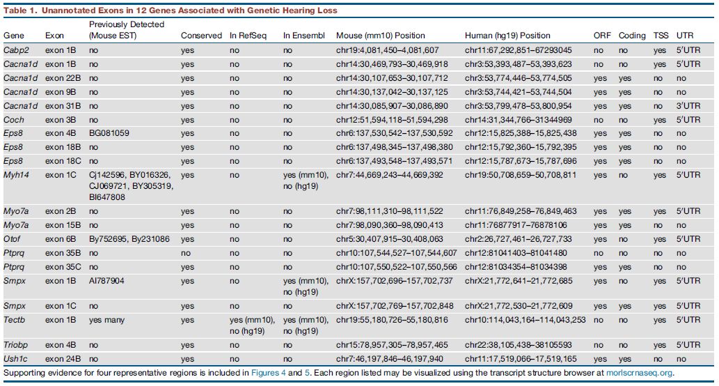 • 對耳聾相關(guān)基因的分析鑒定了迄今未被識(shí)別的外顯子;