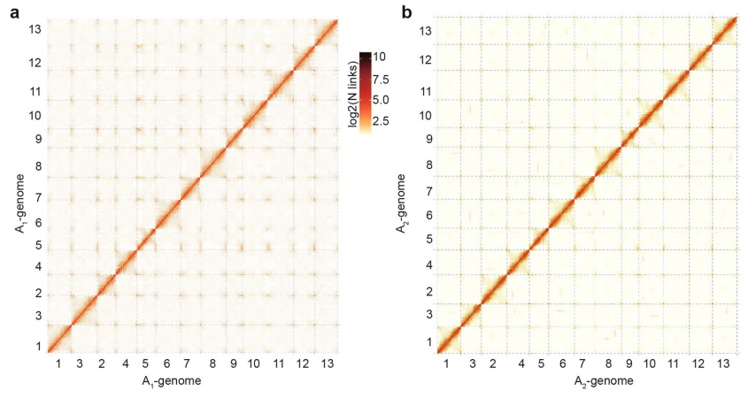 陸地棉和海島棉基因組Hi-C熱圖