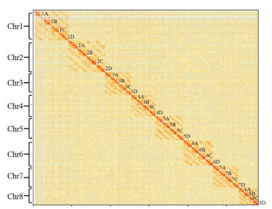 同源多倍體甘蔗基因組Hi-C熱圖