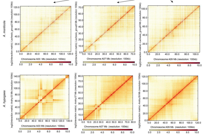 Arachis monticola自身以及與A. hypogaea?Hi-C互作熱圖