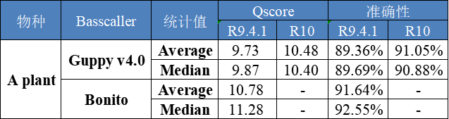 表4 新R9.4.1及R10 basecalling結果比對