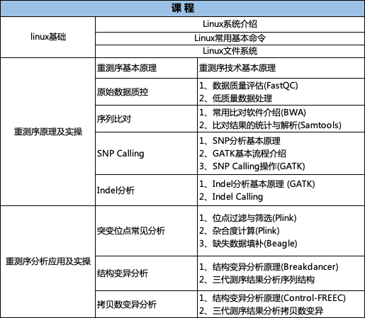 應(yīng)各位老師需求,百邁客特開辦重測(cè)序生信課程,面向全體科研工作者,系統(tǒng)學(xué)習(xí)全基因組重測(cè)序中常規(guī)分析內(nèi)容。課程設(shè)計(jì)覆蓋數(shù)據(jù)質(zhì)控、序列比對(duì)、SNP Calling、SNP 注釋、結(jié)構(gòu)變異等重測(cè)序常見分析內(nèi)容。