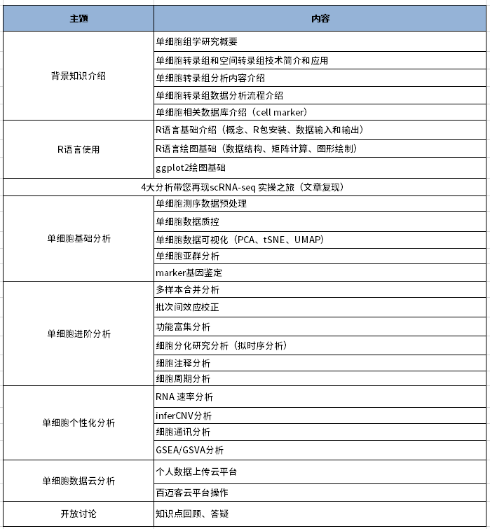 細胞和空間組學(xué)技術(shù)的快速發(fā)展正在開啟生命科學(xué)的時空多維新時代,為復(fù)雜疾病的細胞異質(zhì)性研究提供新視角,引領(lǐng)了生物學(xué)從“時間”維度走向“空間”維度,廣泛應(yīng)用于動植物生長發(fā)育、腫瘤精準治療研究等方向。為了促進單細胞數(shù)據(jù)挖掘和分析,百邁客特開展的單細胞數(shù)據(jù)分析課程,將為您呈現(xiàn)細胞分群、細胞分化研究、marker基因鑒定等分析內(nèi)容,幫助研究者實現(xiàn)了單細胞數(shù)據(jù)更快、更準、更高的分析轉(zhuǎn)化。