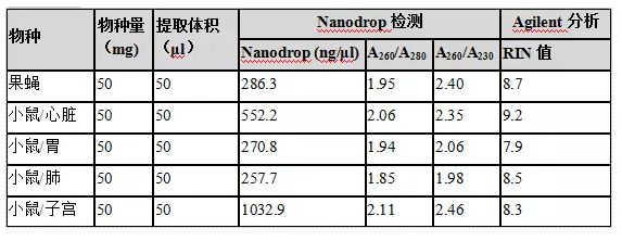 1.DNA濃度/純度檢測:提取不同動物組織中的DNA,然后檢測DNA的濃度和吸光度。
