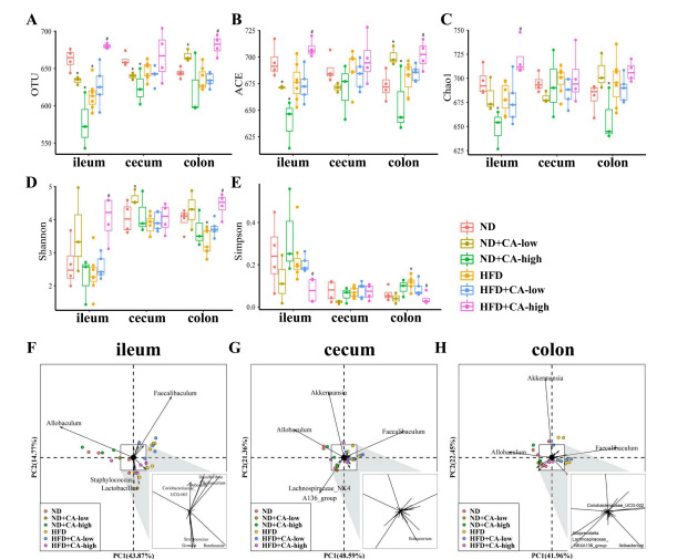 5.補(bǔ)充CA可減少高脂飼料喂養(yǎng)小鼠的腸道菌群失調(diào)