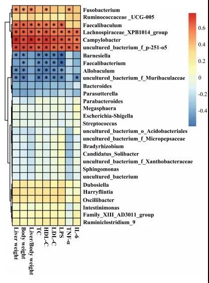 6.腸道菌群與NAFLD相關(guān)參數(shù)的相關(guān)性