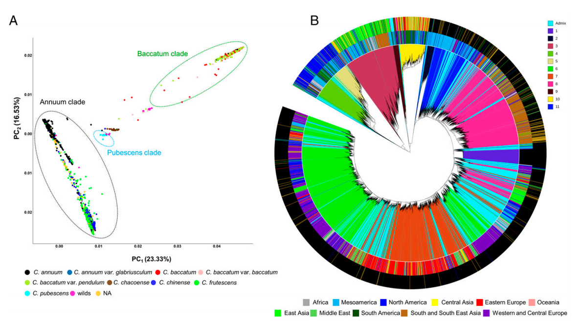 [2] Tripodi P, Rabanus-Wallace MT, Barchi L, et al. Global range expansion history of pepper (Capsicum spp.) revealed by over 10,000 genebank accessions. Proc Natl Acad Sci U S A. 2021;118(34):e2104315118.