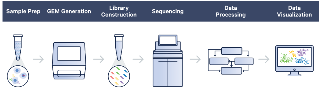 圖4. Chromium X系統(tǒng)單細(xì)胞測(cè)序?qū)嶒?yàn)流程