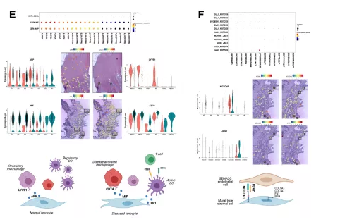 肌腱病,包括以疼痛和功能受限為特征的多因素肌腱疾病仍然是肌肉骨骼醫(yī)學(xué)的重大疑難問題。最近的研究結(jié)果強(qiáng)調(diào)了免疫介導(dǎo)機(jī)制在肌腱疾病中的關(guān)鍵作用,印證了通常與炎癥性風(fēng)濕病和肌肉骨骼疾病 (RMD) 相關(guān)的關(guān)鍵的免疫學(xué)和生物力學(xué)因素,在肌腱中也會表現(xiàn)出來。單細(xì)胞技術(shù)(scRNAseq) 越來越多地應(yīng)用于風(fēng)濕病學(xué),以識別驅(qū)動疾病發(fā)病機(jī)制的關(guān)鍵細(xì)胞表型。盡管在小細(xì)胞數(shù)量和異質(zhì)肌腱活檢方面做出了努力,仍然沒有詳細(xì)的空間肌腱細(xì)胞圖譜預(yù)知轉(zhuǎn)化目標(biāo)。因此本文利用scRNAseq和空間轉(zhuǎn)錄組(ST)強(qiáng)強(qiáng)聯(lián)合,進(jìn)行細(xì)胞間相互作用分析以構(gòu)建動態(tài)細(xì)胞微環(huán)境的圖譜,驅(qū)動人類慢性肌腱疾病的發(fā)展。