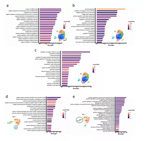 從細(xì)胞間相互作用分析產(chǎn)生ST指示性數(shù)據(jù)表明基質(zhì)誘導(dǎo)免疫調(diào)節(jié)。因此假設(shè)肌腱內(nèi)免疫區(qū)室的主要作用是調(diào)節(jié)和解決損傷;然而隨著微創(chuàng)傷的累積,肌腱細(xì)胞發(fā)起的碎片去除和基質(zhì)修復(fù)的基本過程可能導(dǎo)致免疫區(qū)室陽性擴(kuò)增。進(jìn)一步提出,在患者肌腱內(nèi),免疫穩(wěn)態(tài)可能變得不平衡,激活的免疫細(xì)胞由內(nèi)皮細(xì)胞和基質(zhì)細(xì)胞引發(fā),促進(jìn)炎癥循環(huán)和異常組織修復(fù)。炎癥環(huán)境,包括在這個初步肌腱圖譜中明確證明的細(xì)胞因子通路,在一系列炎癥性RMDs中產(chǎn)生有效的免疫干預(yù)。最值得關(guān)注的是在人類肌腱疾病中定位和研究這些通路的潛力。
