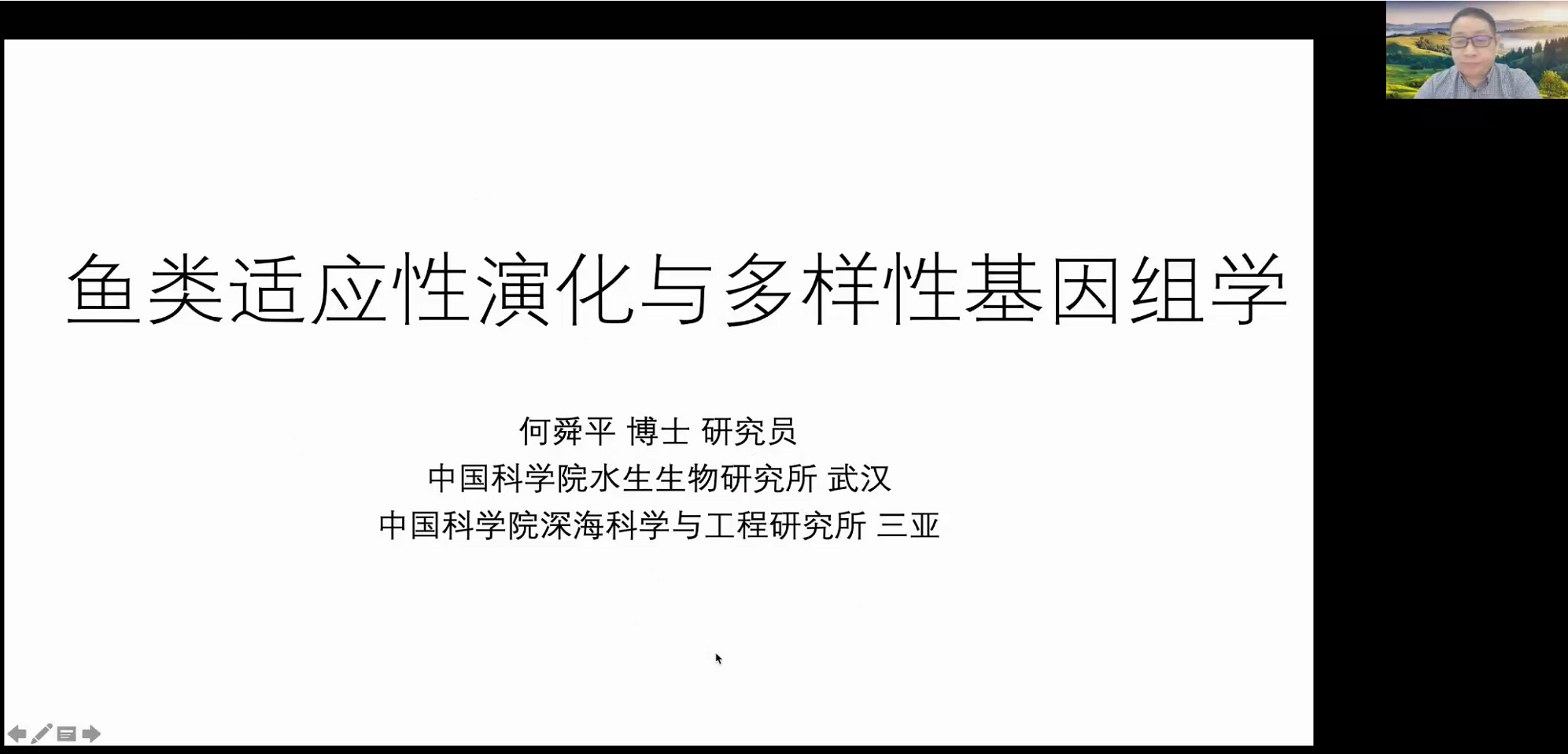中國科學(xué)院水生生物研究所何舜平研究員充分的介紹了魚類適應(yīng)性演化相關(guān)研究。研究團(tuán)隊基于輻鰭魚類與四足類進(jìn)化年齡、選擇壓力、表達(dá)模式以及相關(guān)的基因功能的比較分析,探討了它們對脊椎動物“登陸”事件以及矛尾魚進(jìn)化的意義。揭示了早在脊椎動物祖先首次登陸之前,許多對脊椎動物登陸至關(guān)重要的肺、心臟和運動功能的遺傳調(diào)控網(wǎng)絡(luò)就已存在。進(jìn)一步通過演變中重要地位的肺魚基因組解析了其肺表面活性劑關(guān)鍵基因、手指形成關(guān)鍵元件保守元件、抗抑郁相關(guān)關(guān)鍵基因。最后何老師基于萬種魚基因計劃也為我們展示了鯉科魚類適應(yīng)進(jìn)化的科研成果。