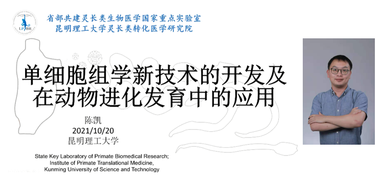 昆明理工大學(xué)省部共建非人靈長類生物醫(yī)學(xué)國家重點(diǎn)實(shí)驗(yàn)室陳凱教授帶來的報(bào)告題目是單細(xì)胞組學(xué)新技術(shù)的開發(fā)及在動(dòng)物進(jìn)化發(fā)育中的應(yīng)用。陳老師團(tuán)隊(duì)通過結(jié)合單細(xì)胞功能組學(xué)技術(shù)和經(jīng)典發(fā)育生物學(xué)方法,成功繪制了完整的脊索動(dòng)物胚胎發(fā)育單細(xì)胞轉(zhuǎn)錄譜系以及對(duì)應(yīng)的調(diào)控網(wǎng)絡(luò)草圖,在此基礎(chǔ)上發(fā)現(xiàn)了多巴胺神經(jīng)元命運(yùn)決定的保守因子(Meis和Ptf1),并開發(fā)出了基于CUT&Ta研究多個(gè)目的蛋白-DNA互作的新方法(Multi-CUT&Tag),結(jié)合10x多組學(xué)平臺(tái),該方法能有效地整合細(xì)胞類型特征和染色質(zhì)的信息,有利于獲得更加清晰的細(xì)胞譜系和染色質(zhì)特征,有助于解析細(xì)胞命運(yùn)決定背后的調(diào)控機(jī)制。