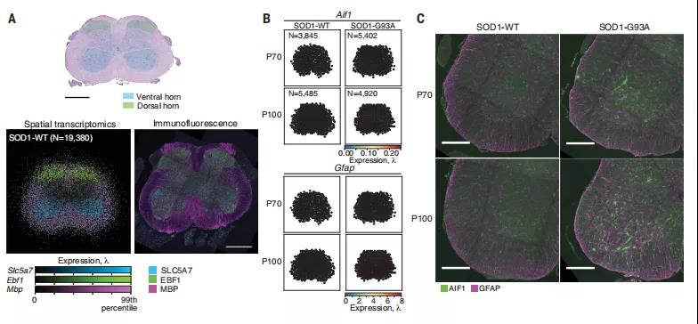 肌萎縮性側(cè)索硬化癥(ALS)是一種進(jìn)行性神經(jīng)退行性疾病,由運(yùn)動(dòng)神經(jīng)元變性導(dǎo)致骨骼肌失去神經(jīng)支配而引起的,其癥狀先在單肢的遠(yuǎn)端肌肉中表現(xiàn),然后逐漸擴(kuò)散到全身,最終導(dǎo)致全身癱瘓。前期研究證明運(yùn)動(dòng)神經(jīng)元和膠質(zhì)細(xì)胞之間的信號(hào)傳遞障礙是該疾病的一個(gè)關(guān)鍵因素,但是在完整的脊髓組織中驅(qū)動(dòng)這些過(guò)程的分子事件的時(shí)空順序仍然不清楚。