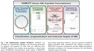 然而,急性髓細(xì)胞白血病的z確分類(lèi)需要不同的技術(shù)來(lái)捕獲結(jié)構(gòu)多樣的基因突變,如較大的插入和缺失(indels)、融合基因和除小變異外的結(jié)構(gòu)性染色體變異。此外,結(jié)構(gòu)正常基因的表達(dá)水平可對(duì)預(yù)后產(chǎn)生決定性影響。因此,在當(dāng)前的技術(shù)平臺(tái)下,急性髓細(xì)胞白血病診斷及風(fēng)險(xiǎn)評(píng)估仍然繁瑣、貴,且不完整。為了解決這一需求,我們實(shí)施了全轉(zhuǎn)錄組RNA測(cè)序(mRNAseq),作為獲取與當(dāng)前和未來(lái)分類(lèi)和風(fēng)險(xiǎn)分類(lèi)相關(guān)的所有遺傳信息的單一平臺(tái)。在這種診斷范式中,一個(gè)經(jīng)認(rèn)可的mRNAseq協(xié)議獲取診斷樣本的全面數(shù)據(jù)。對(duì)于單次運(yùn)行數(shù)據(jù)分析,我們開(kāi)發(fā)了一個(gè)指定的集成生物信息管道(人類(lèi)急性髓細(xì)胞白血病快速轉(zhuǎn)錄組學(xué)(HALLET);Fig. 1)。HAMLET具有靈活的適應(yīng)性和個(gè)性化,可以查詢(xún)一組選定基因的序列變異和表達(dá)水平,以及易位情況。