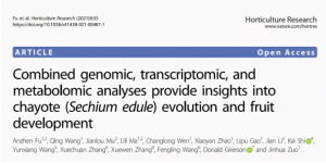 主要內(nèi)容:本研究通過Nanopore技術(shù)首次完成高質(zhì)量的佛手瓜基因組,基因組組裝大小為606.42Mb,ContigN50=8.4 Mb。并基于Hi-C技術(shù)將基因組序列掛載至14條染色體上(掛載率97.04%)。通過與其他13個(gè)物種基因家族比較,發(fā)現(xiàn)佛手瓜在25±4百萬年間發(fā)生了一次全基因組復(fù)制事件,是葫蘆科內(nèi)的第三次全基因組復(fù)制事件。通過不同生長時(shí)期的轉(zhuǎn)錄組與代謝組分析,進(jìn)一步揭示了在佛手瓜果實(shí)發(fā)育過程中與果實(shí)質(zhì)地、色素、風(fēng)味、類黃酮、抗氧化劑和植物激素有關(guān)的基因。并據(jù)此構(gòu)建了佛手瓜果實(shí)生長發(fā)育調(diào)控模型,并為佛手瓜果實(shí)和塊莖發(fā)育以及遺傳改良的未來研究奠定了基礎(chǔ)。
