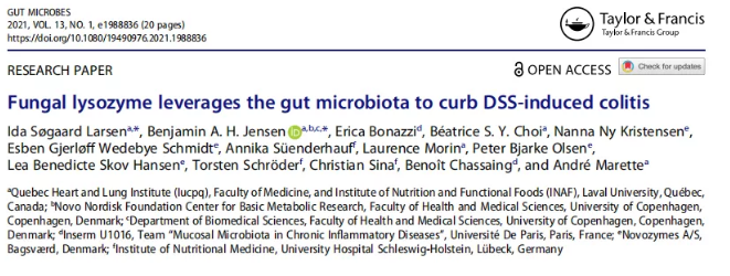 1. Larsen, Ida S?gaard et al. “Fungal lysozyme leverages the gut microbiota to curb DSS-induced colitis.” Gut microbes vol. 13,1 (2021): 1988836.