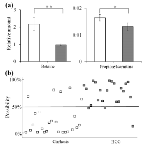 甜菜堿、丙酰肉堿組合能夠?qū)Ω闻K疾病進行良好的預測,可以作為臨床肝癌的診斷標志物甲胎蛋白AFP的補充診斷手段。