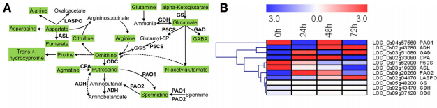 研究結(jié)果:RNA測(cè)序和代謝組學(xué)技術(shù),使用定量實(shí)時(shí)PCR驗(yàn)證數(shù)據(jù)。當(dāng)水稻受到C.?suppressalis幼蟲(chóng)損傷時(shí),有4,729個(gè)基因和151個(gè)代謝物受到不同的調(diào)節(jié)。進(jìn)一步的分析表明,防御相關(guān)的植物激素,轉(zhuǎn)錄因子,莽草酸介導(dǎo)和萜類化合物相關(guān)的次生代謝被激活,而生長(zhǎng)相關(guān)的同行被抑制C.?suppressalis喂養(yǎng)。活化的防御由能量?jī)?chǔ)存化合物如單糖的分解代謝促進(jìn),這同時(shí)導(dǎo)致參與水稻植物防御反應(yīng)的代謝物的水平增加??杀容^的分析顯示了轉(zhuǎn)錄物模式和代謝物譜之間的對(duì)應(yīng)。