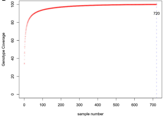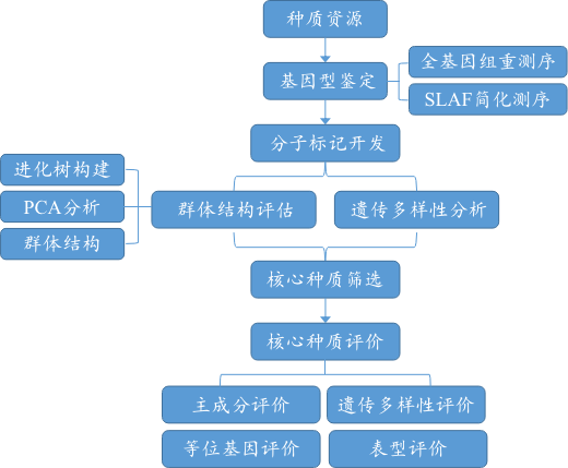 核心種質(zhì)可以最大限度地去除原始種質(zhì)資源中的重復(fù),以最少的種質(zhì)材料代表原始種質(zhì)資源的全部或大多數(shù)遺傳多樣性和地理來源,為當前越來越多的種質(zhì)資源收集、評價和利用帶來了便利,特別是隨著基因組學的發(fā)展,測序成本的極速下降,使得大規(guī)模群體測序得以實現(xiàn)。利用高分辨率的分子標記,提升遺傳材料間遺傳相似度和雜合度的鑒別能力,從而選擇能夠代表整個種質(zhì)資源基因多樣性的大小合理的核心種質(zhì)材料,更加有助于種質(zhì)資源的保存、管理、使用。使得我們可以有重點地進行優(yōu)異種質(zhì)的研究,結(jié)合GWAS分析、遺傳進化分析、QTL定位、特有標記開發(fā)等方法進一步進行基因的挖掘與克隆,提高種質(zhì)資源的利用效率。