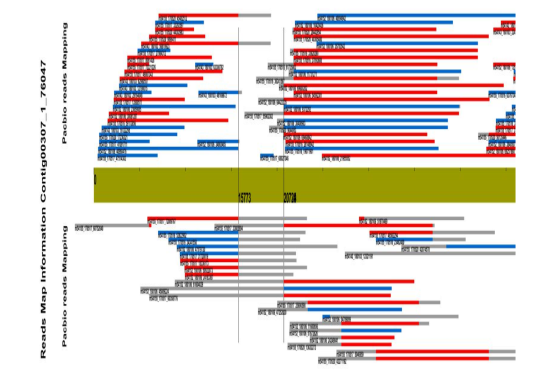 百邁客專利技術(shù)《基于三代數(shù)據(jù)的基因組斷點(diǎn)識別技術(shù)》能結(jié)合三代測序數(shù)據(jù)快速方便的判斷基因組序列的組裝錯誤,提升基因組序列z確性,為生物學(xué)研究奠定重要的基因組基礎(chǔ)。該專利技術(shù)不僅可以判斷基因組上連接錯誤的地方(即斷點(diǎn)),同時可以對錯誤區(qū)域的結(jié)果進(jìn)行作圖,給予研究者直觀的結(jié)果展示,從而方便研究者對基因組序列進(jìn)行進(jìn)一步改善,為基因組數(shù)據(jù)分析提供一個有力的工具。