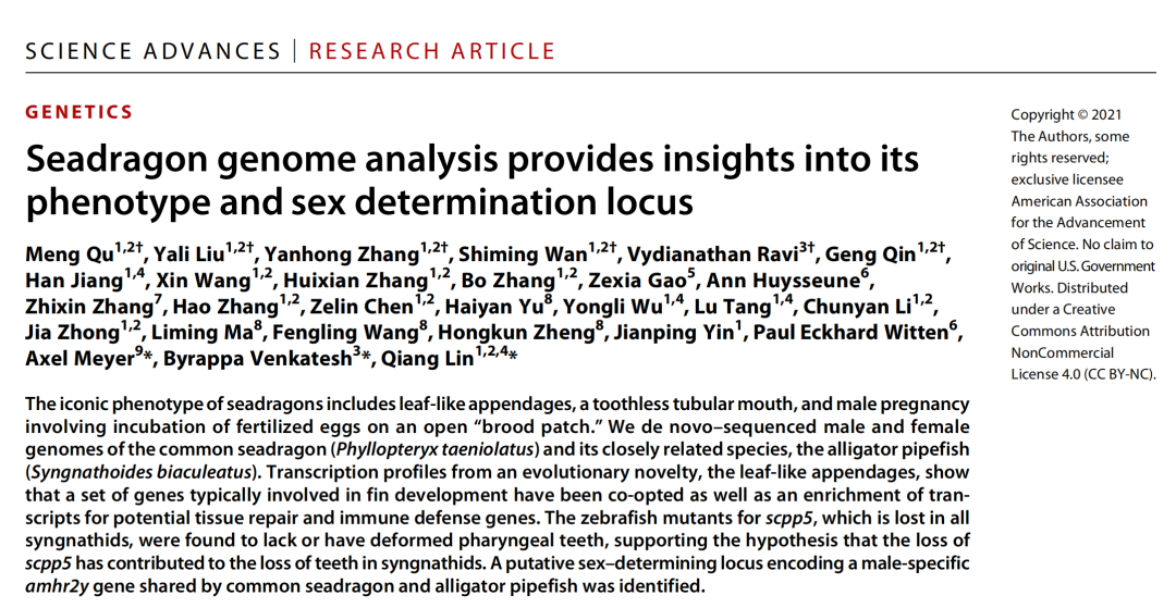 而該項(xiàng)技術(shù)也已在多項(xiàng)合作案例中成功引用,如2021年中國科學(xué)院昆明植物研究所關(guān)于無刺光葉薔薇(月季)基因組學(xué)研究成果發(fā)表在國際期刊National?Science?Review(IF:17.275),探究了月季皮刺遺傳調(diào)控機(jī)制,為更好理解植物新性狀產(chǎn)生與維持機(jī)制提供了新視角;如2021年中國科學(xué)院南海海洋研究所關(guān)于草海龍基因組學(xué)研究成果發(fā)表在國際期刊Science?Advances(IF:14.136),揭示了海龍科物種性別決定基因的產(chǎn)生和演化歷程,為海洋魚類的環(huán)境適應(yīng)性進(jìn)化研究提供了重要理論依據(jù)。