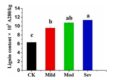 3、油斑菌病對檸檬皮中木質(zhì)素積累的影響
