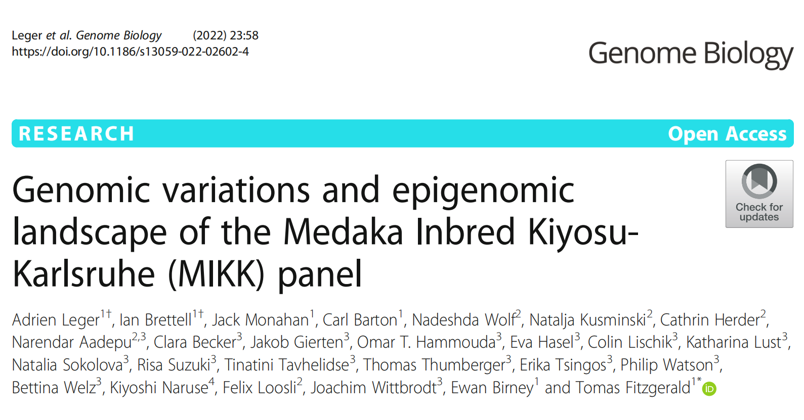 在與這篇文章一起發(fā)表的配套文章中,我們根據(jù)Illumina短讀序列與最近、完全組裝的參考基因組(日本南部medaka自交系HdrR)的比對,提供了80個個體MIKK面板系[4]的詳細遺傳特征。