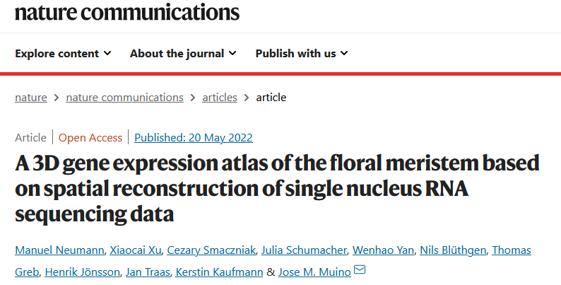 Neumann M, Xu X, Smaczniak C, et al. A 3D gene expression atlas of the floral meristem based on spatial reconstruction of single nucleus RNA sequencing data. Nat Commun. 2022 May 20;13(1):2838.
