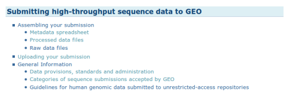 登錄成功后,回到GEO的主頁,點(diǎn)擊 ?Submission Guidelines