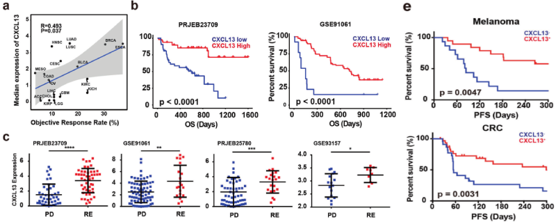 研究?jī)?nèi)容:針對(duì)腫瘤特異性抗原(TSA)的個(gè)性化免疫療法可以在不損害正常組織的情況下產(chǎn)生有效和安全的抗腫瘤免疫反應(yīng),盡管新抗原疫苗已在臨床試驗(yàn)中顯示出治療效果,但從腫瘤突變中預(yù)測(cè)新抗原仍然具有挑戰(zhàn)性,宿主抗腫瘤免疫反應(yīng)選擇并激活識(shí)別腫瘤抗原的T細(xì)胞;因此用來(lái)自患者體內(nèi)這些天然存在的腫瘤抗原特異性T(Tas)細(xì)胞的T細(xì)胞受體改造的T細(xì)胞將靶向患者腫瘤中的TSA。本研究揭示了Tas 細(xì)胞的特點(diǎn)是腫瘤富集、腫瘤特異性克隆擴(kuò)增和新抗原特異性;評(píng)估了腫瘤中Tas細(xì)胞標(biāo)記物CXCL13的表達(dá)水平可能比來(lái)自免疫周期早期步驟的標(biāo)志物(如TMB)更jing q 地預(yù)測(cè)對(duì)ICB 的反應(yīng);并將CD200和ENTPD1分別鑒定為CD4+和CD8+Tas細(xì)胞的表面標(biāo)志物。