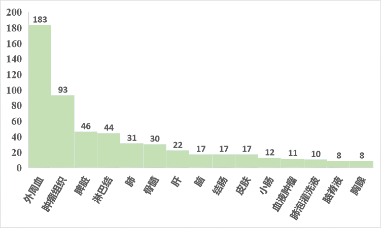 與圖2展示的類(lèi)似,百邁客實(shí)測(cè)項(xiàng)目中血液樣本數(shù)量很多,占比超60%;血液樣本相較于組織樣本,無(wú)需進(jìn)行細(xì)胞解離,能夠避免細(xì)胞解離引起的細(xì)胞活性受損、細(xì)胞類(lèi)型丟失等問(wèn)題;尤其是臨床樣本,往往涉及到組織樣本獲取難度大的問(wèn)題,患者治療后腫瘤組織取樣更是很多老師的困擾,因此取配對(duì)的血液樣本就成了一個(gè)合適的替代方案,在臨床監(jiān)測(cè)、標(biāo)志物診斷方面更是具有巨大的優(yōu)勢(shì)。