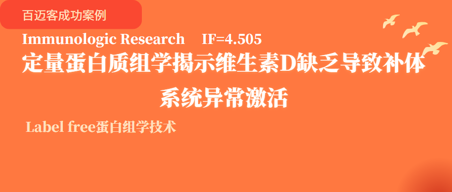 2022年9月30日,銀川市第一人民醫(yī)院謝曉敏教授團(tuán)隊(duì)在《Immunologic Research》發(fā)表題為“Vitamin D deficiency leads to the abnormal activation of the complement system”的研究論文,該研究運(yùn)用Laber free蛋白質(zhì)組學(xué)技術(shù)在疾病研究中的應(yīng)用,分析了不同維生素D水平下補(bǔ)體系統(tǒng)蛋白質(zhì)表達(dá)的變化,發(fā)現(xiàn)了維生素D缺乏不僅會(huì)導(dǎo)致胰島素抵抗和糖代謝紊亂,還會(huì)導(dǎo)致蛋白質(zhì)表達(dá)異常,從而導(dǎo)致補(bǔ)體系統(tǒng)的異常激活。為進(jìn)一步研究維生素D與免疫系統(tǒng)的關(guān)系提供了新的理論基礎(chǔ)。百邁客生物為該研究提供了蛋白組檢測(cè)服務(wù)與部分分析工作。