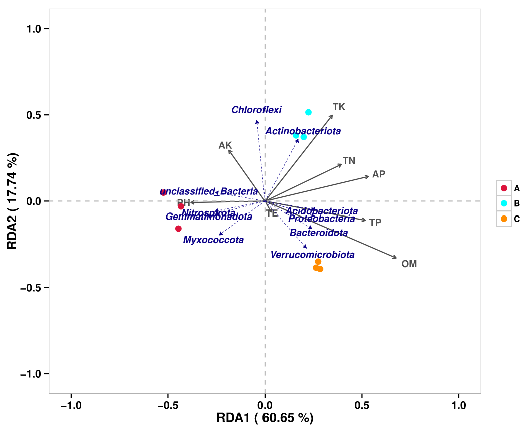 RDA/CCA分析:RDA(Redundancy analysis)/CCA(Canonical Correspondence analysis)是基于對應分析發(fā)展的一種排序方法,RDA分析基于線性模型,CCA分析基于單峰模型,主要用來反映菌群或樣品與環(huán)境因子之間的關系。根據物種分布變化,選擇最*的分析模型。