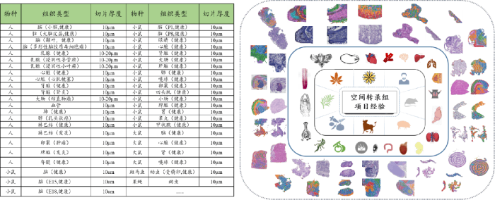 空間轉(zhuǎn)錄組從組織切片、染色到組織透化的實驗過程,也直接關(guān)系到分析數(shù)據(jù)的質(zhì)量,百邁客實驗人員經(jīng)過大量的項目積累,創(chuàng)建了動植物組織優(yōu)化標準體系,保證組織優(yōu)化結(jié)果準確判讀,可提供高質(zhì)量的報告數(shù)據(jù),目前實測組織類型100+種,包括人、小鼠、大鼠、果蠅、牛等物種的腫瘤樣本、胚胎樣本、肝臟樣本、肺部樣本、腦部樣本等組織類型,尤其是突破了動物血管、軟骨、皮膚類組織的切片、透化難點,為高質(zhì)量數(shù)據(jù)分析提供了保障。