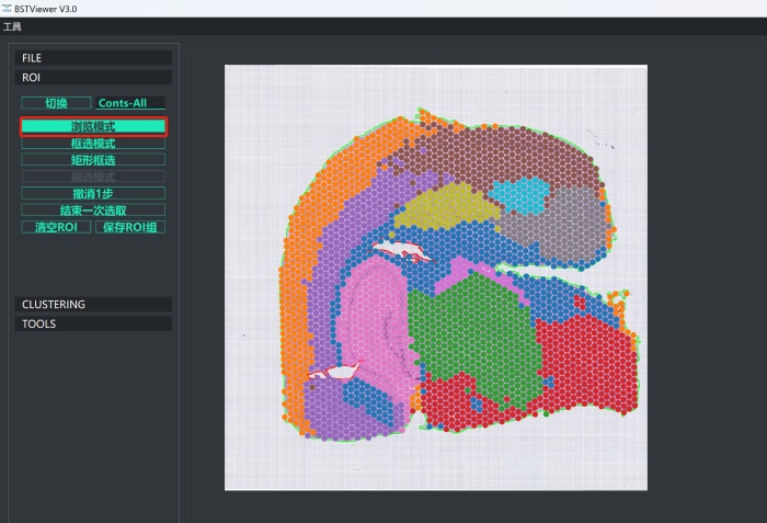 6)最后得到框選到的感興趣區(qū)域的聚類結(jié)果,點擊“ROI”切換為“瀏覽模式”可以通