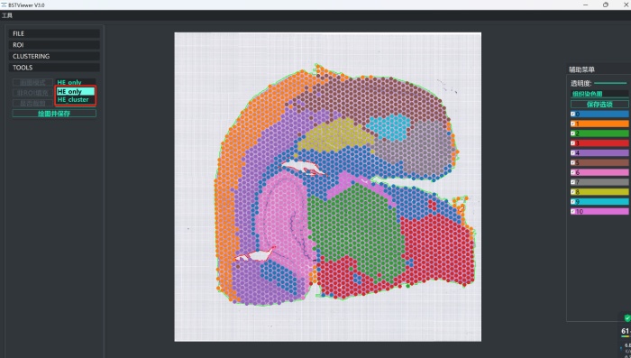 7)聚類圖片可以在TOOLS欄中進(jìn)行保存。點擊圖畫模式可以選擇“僅保存HE”和“HE&Cluster”分別進(jìn)行保存。