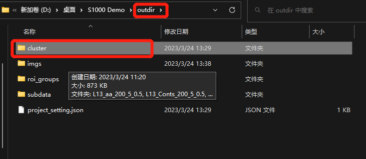 3)選擇的區(qū)域聚類的矩陣文件保存在“subdata”文件夾中