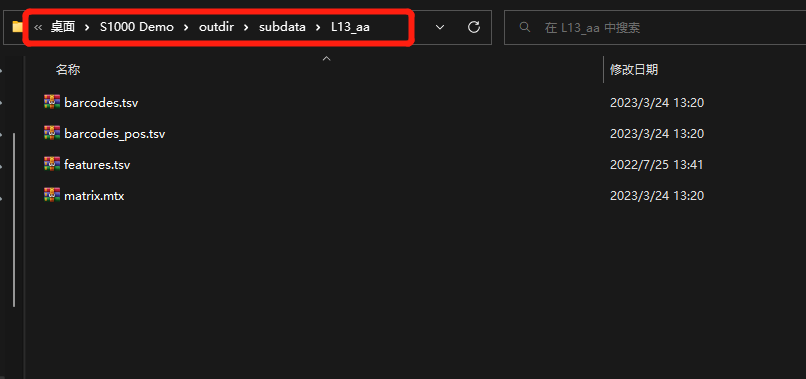 1)將官網(wǎng)下載到的BSTViewer_project文件夾數(shù)據(jù)(或者通過運(yùn)行BSTMatrix 得到的BSTViewer_project 文件夾)存放到英文命名的文件夾之中;【包括各個級別分辨率矩陣文件,及BMChiper 或者官網(wǎng)下載的HE 染色圖片】可以同時在此文件夾下邊新建一個outdir 作為文件輸出路徑;