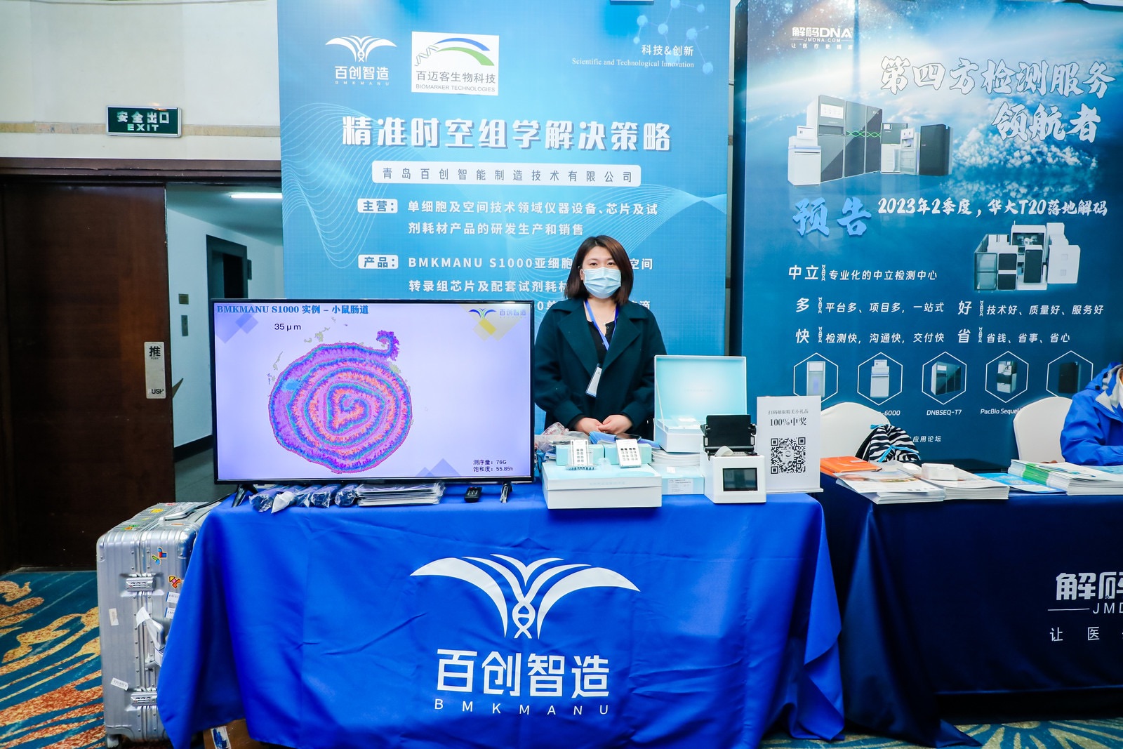 本次展會(huì)百邁客旗下百創(chuàng)智造攜亞細(xì)胞級(jí)空間組學(xué)芯片BMKMANU S1000(百創(chuàng)S1000)單細(xì)胞平臺(tái)BMKMANU DG1000(百創(chuàng)DG1000)亮相大會(huì)。